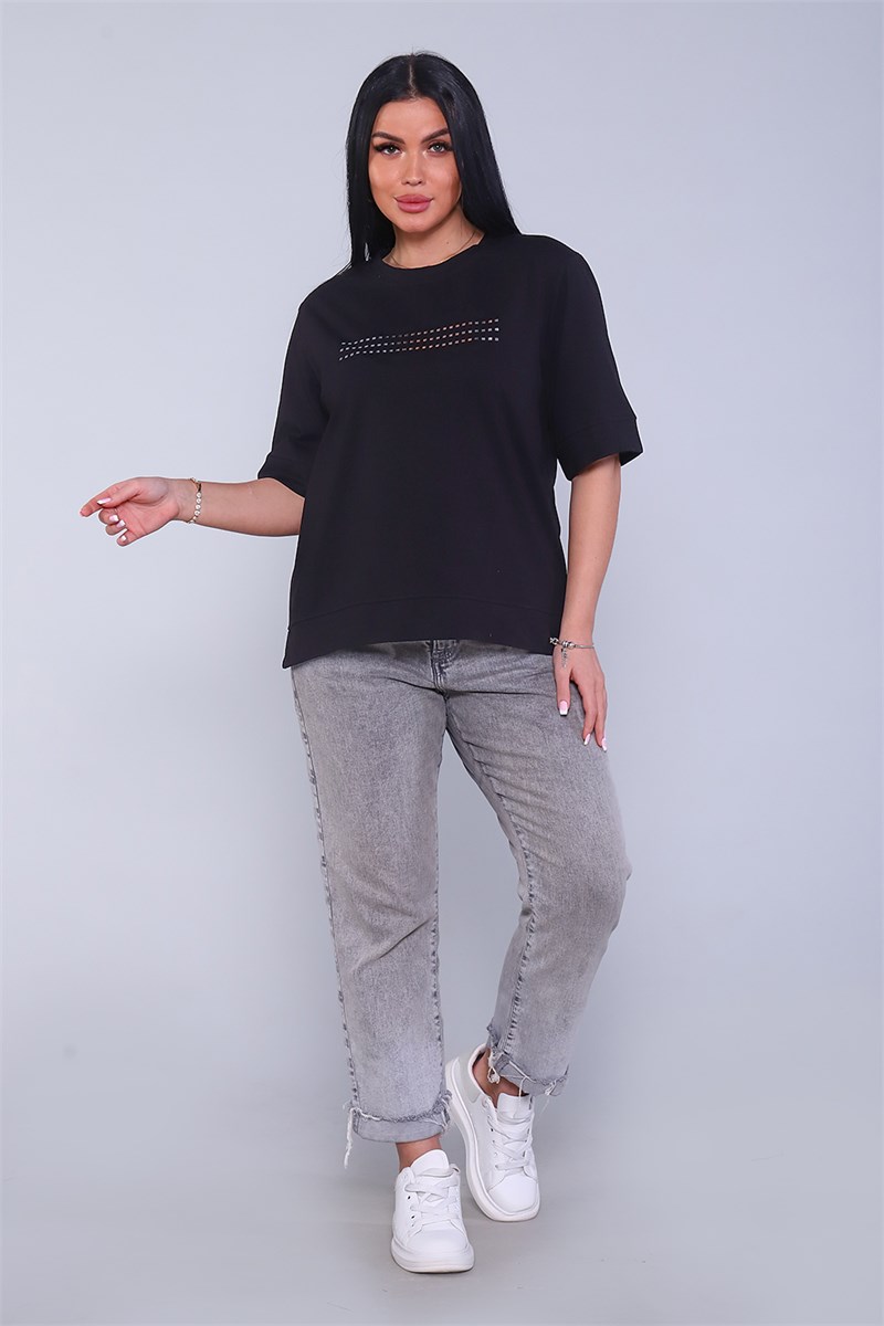 Футболка женская с мерцающим принтом, из мягкого трикотажа с лайкрой высокого качества пенье. Модель свободного силуэта, горловина круглая обработана обтачкой, короткий рукав с широким манжетом, низ футболки обработан широкой планкой с разрезами по бокам. Стильная, комфортная футболка необходимая вещь в женском гардеробе.