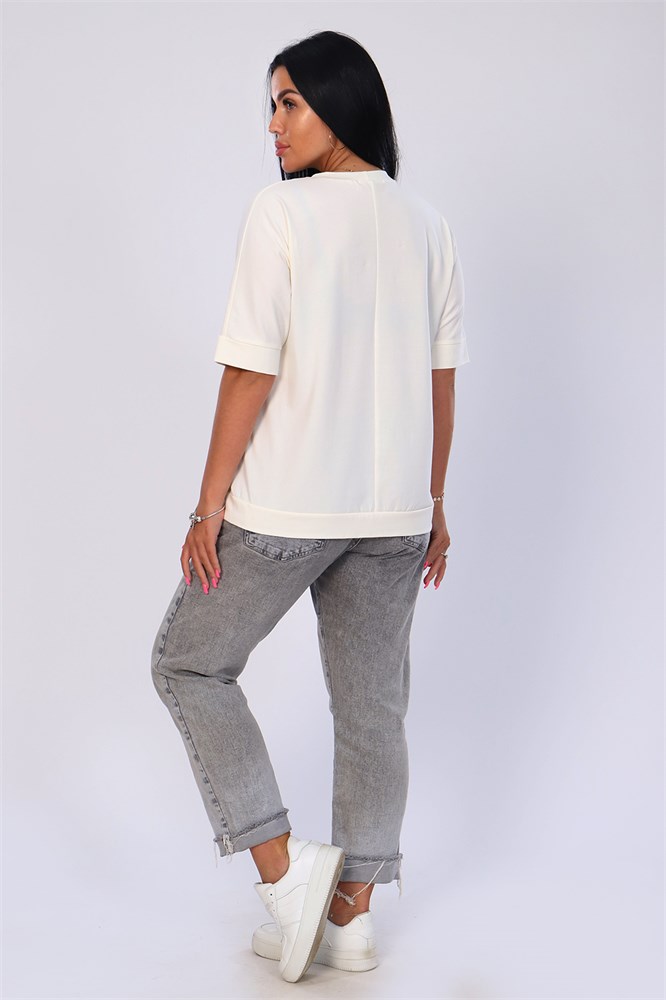 Футболка женская из кулирки с лайкрой высокого качества пенье. Модель свободного кроя, горловина круглая обработана обтачкой, цельнокроеный рукав длиной до локтя, низ спинки и рукав обработаны широким манжетом. Стильный принт, комфортная футболка придаст вашему образу индивидуальность и неповторимость, скроет недостатки и подчеркнёт достоинства фигуры.