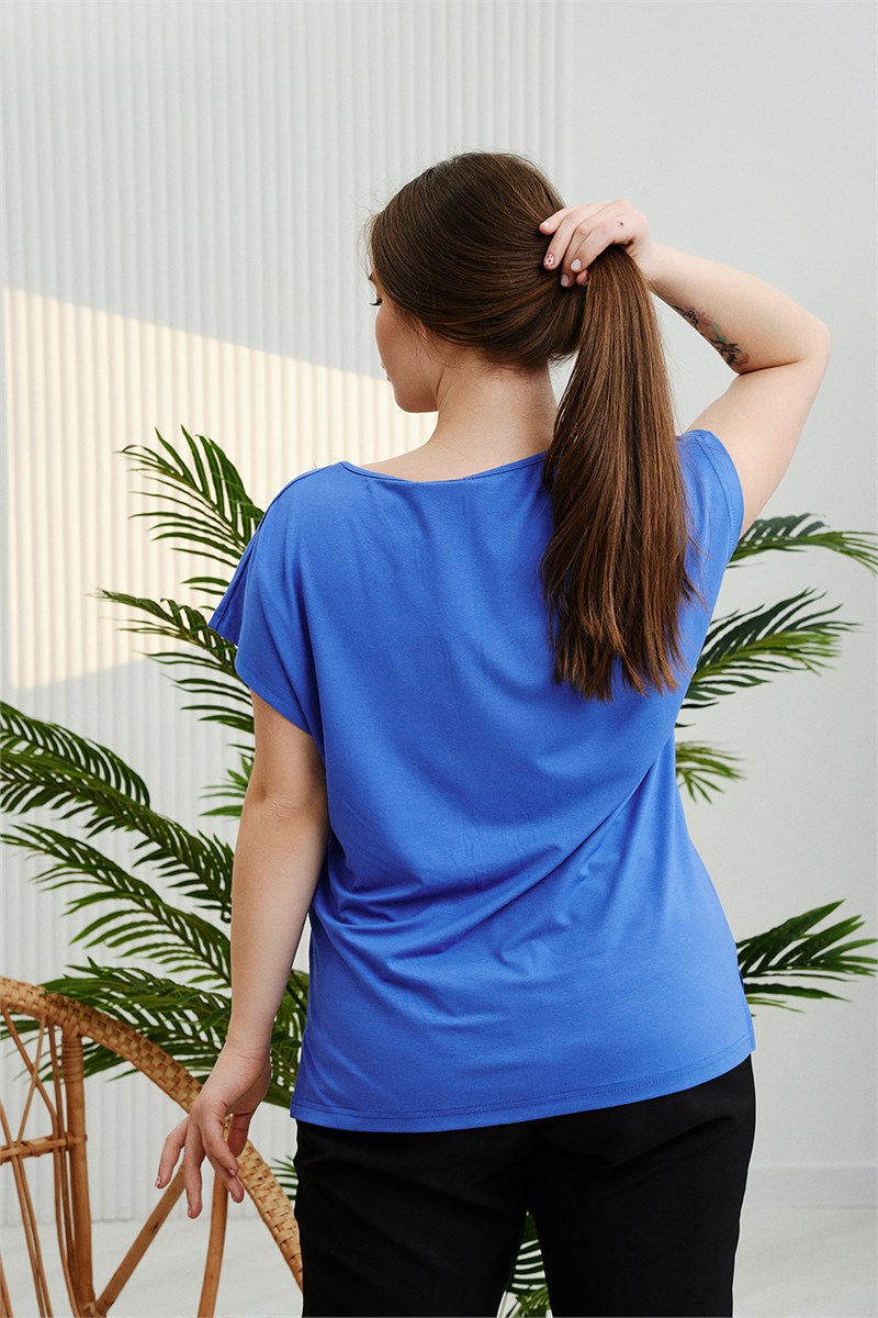 Футболка женская прямого силуэта с разрезами в боковом шве. Y-образный вырез горловины. Рукав цельнокроенный короткий. На полочке стильный принт.