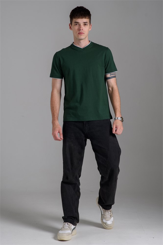 Футболка мужская однотонная с окантовкой из плотного дышащего хлопка. Модель в расслабленном молодежном стиле. Свободный прямой крой база для любого гардероба. Представлены мягкие футболки стандартных размеров, подходят на высокий рост. С усиленным V-Образным вырезом и окантовкой, подойдет для тренировок, офиса, учебы, активного отдыха, туристических поездок, встреч с друзьями и дома.