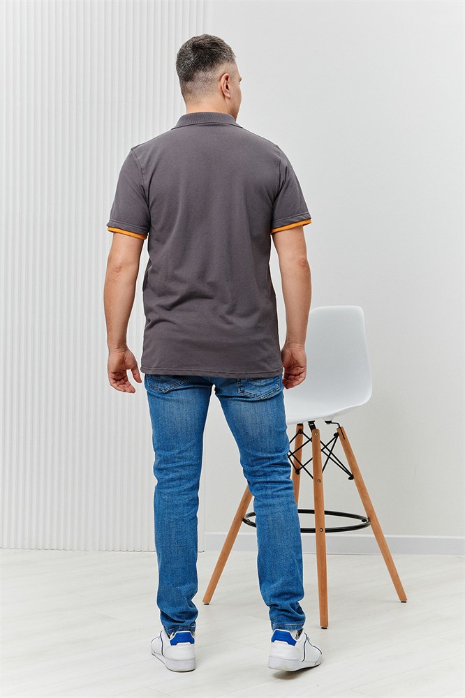 Футболка поло мужская из ткани пике с вязанным воротником. Планка и рукава с контрастной отделкой. Поло подойдет для повседневной носки, отдыха и спорта.