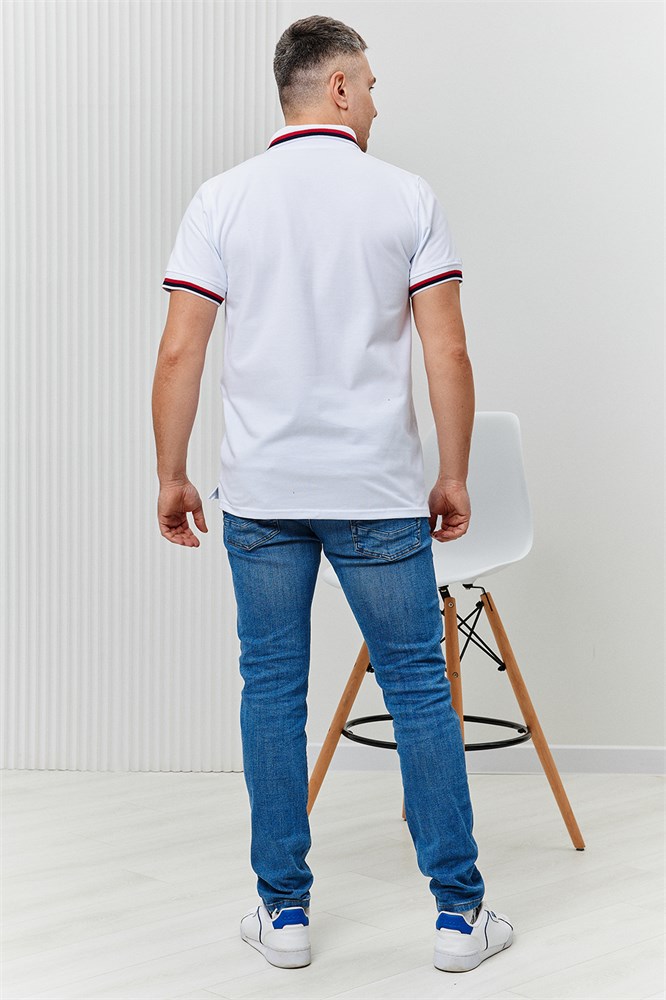 Футболка поло мужская из ткани пике качества пенье плотность 210 г/м2 100% хлопок. На поло вязаные воротник и манжеты в цвет ткани с контрастными полосками по низу, планка на 3 пуговицы контрастного цвета, по бокам разрезы. Футболка удобная и комфортная, идеально подойдет для повседневной носки, прогулок и отдыха. После стирки изделие сохраняет цвет и форму.