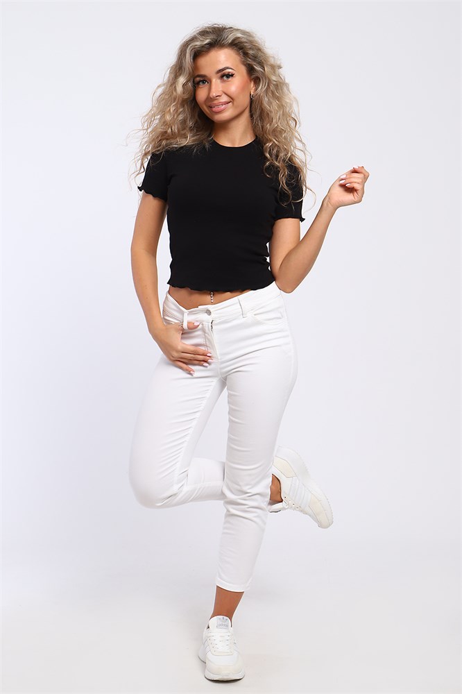 Молодежный вариант прилегающего топа с коротким рукавом и круглой горловиной с оптимальной длиной переда и спинки, из мягкой и эластичной рибаны. Низ рукава и низ изделия обработаны под краевку. На фото модель представлена в 44 размере. На спинке может быть вертикальный шов.
