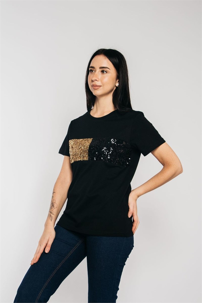 Базовая женская футболка прямого силуета с округлым воротом и коротким рукавом. Нарядная футболка с вышивкой пайетками - отличный вечерний и праздничный вариант одежды. Стильную классическую футболку можно надевать как в офис, так и на не формальную встречу. Размерный ряд с 44 по 54. Крой данной модели дает ощущение легкости и комфорта, не будет сковывать движений, что особенно важно для ежедневной носки. ДЛЯ ЖЕНЩИН, ПРЕДПОЧИТАЮЩИХ СТИЛЬ ОВЕРСАЙЗ, НЕОБХОДИМО БРАТЬ ФУТБОЛКУ НА 2 РАЗМЕРА БОЛЬШЕ. Майка с принтом выполнена из 100% хлопок кулирной глади, такой состав поможет изделию ПОСЛЕ СТИРОК НЕ ДЕФОРМИРОВАТЬСЯ И НЕ ЗАКАТЫВАТЬСЯ. Гарантия качества. Модель рассчитана на рост 170 см.