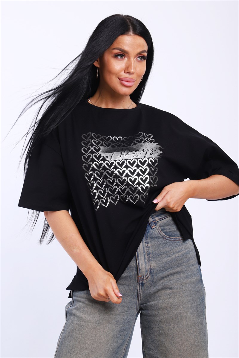 Женская футболка премиум качества в базовом цвете с модным принтом.