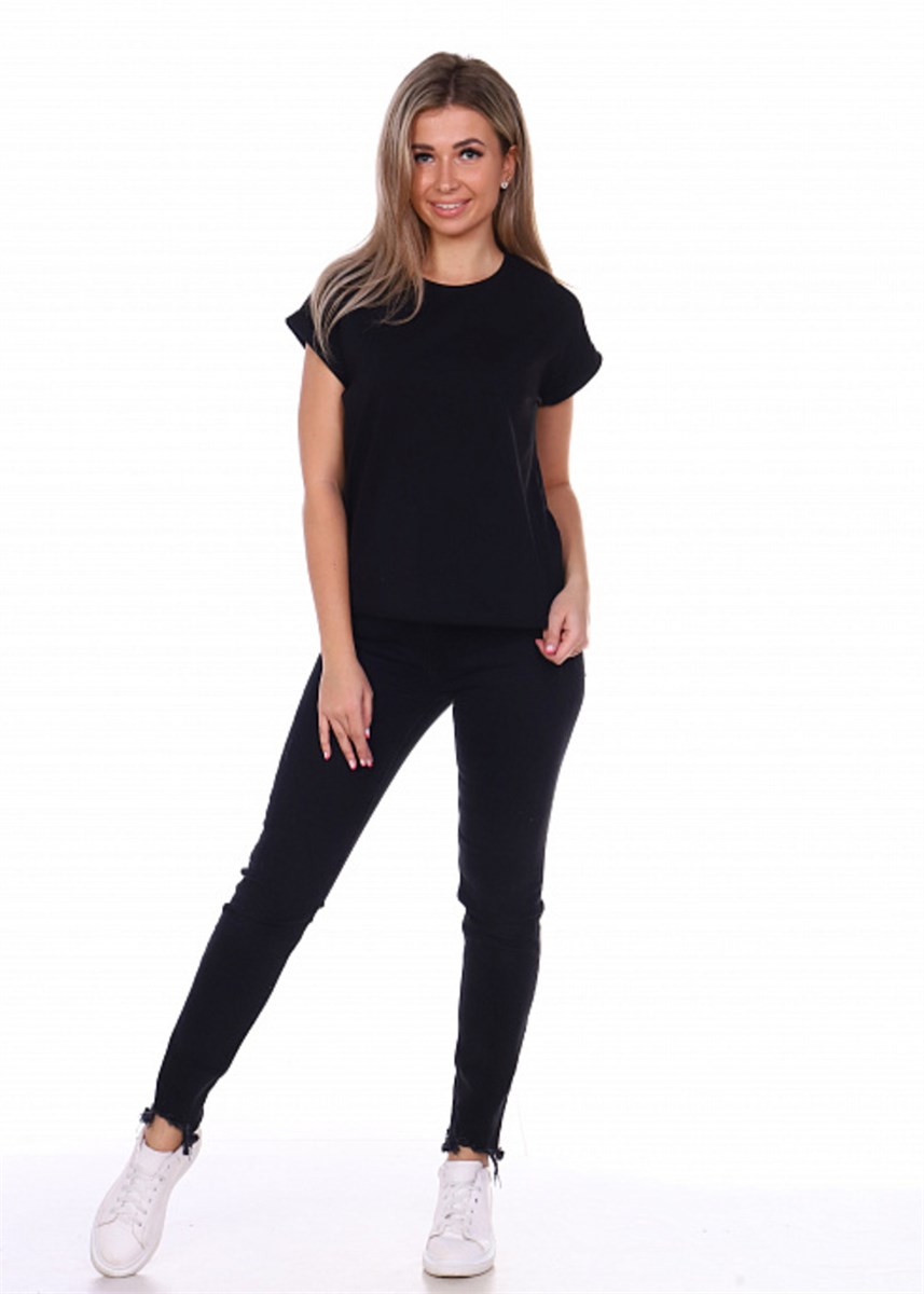 Футболка женская из хлопковой ткани с лайкрой. Ткань держит форму, не вытягивается, приятная на ощупь. Стильная футболка классического фасона со спущенным рукавом. Посадка свободная. Эта базовая модель подойдет абсолютно всем и станет необходимой вещью в вашем гардеробе.