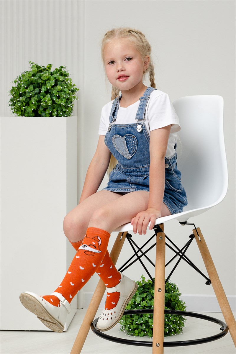 Забавные детские гольфы с узором из сердечек. На верхней части изображение лисенка. В комплекте 2 пары