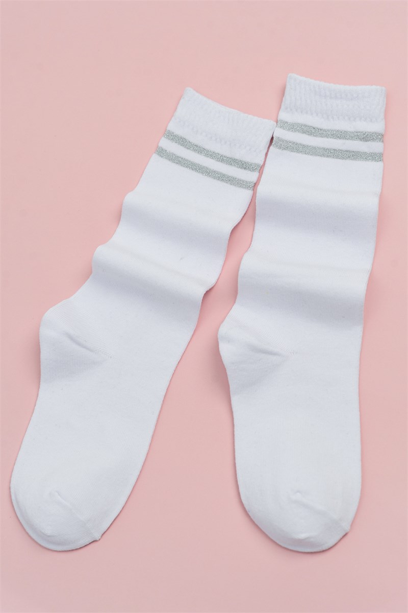 Комплект из двух пар детский гольф. На верхней части носка у самой резинки две полоски выполнены из люрекса - блестящего материала.