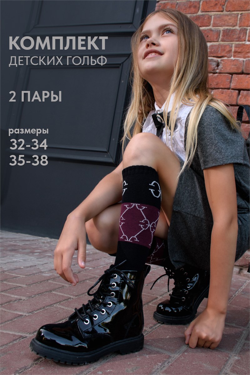 Стильные подростковые гольфы с рисунком. В упаковке 2 пары