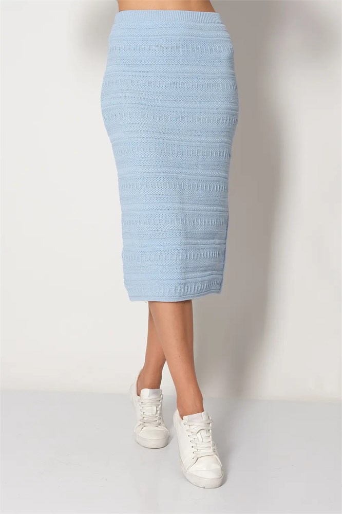 Классическая юбка прилегающего силуэта с боковым разрезом до колена. Юбка выполнена структурным рельефным переплетением. Можно носить как костюм с джемпером И 020.