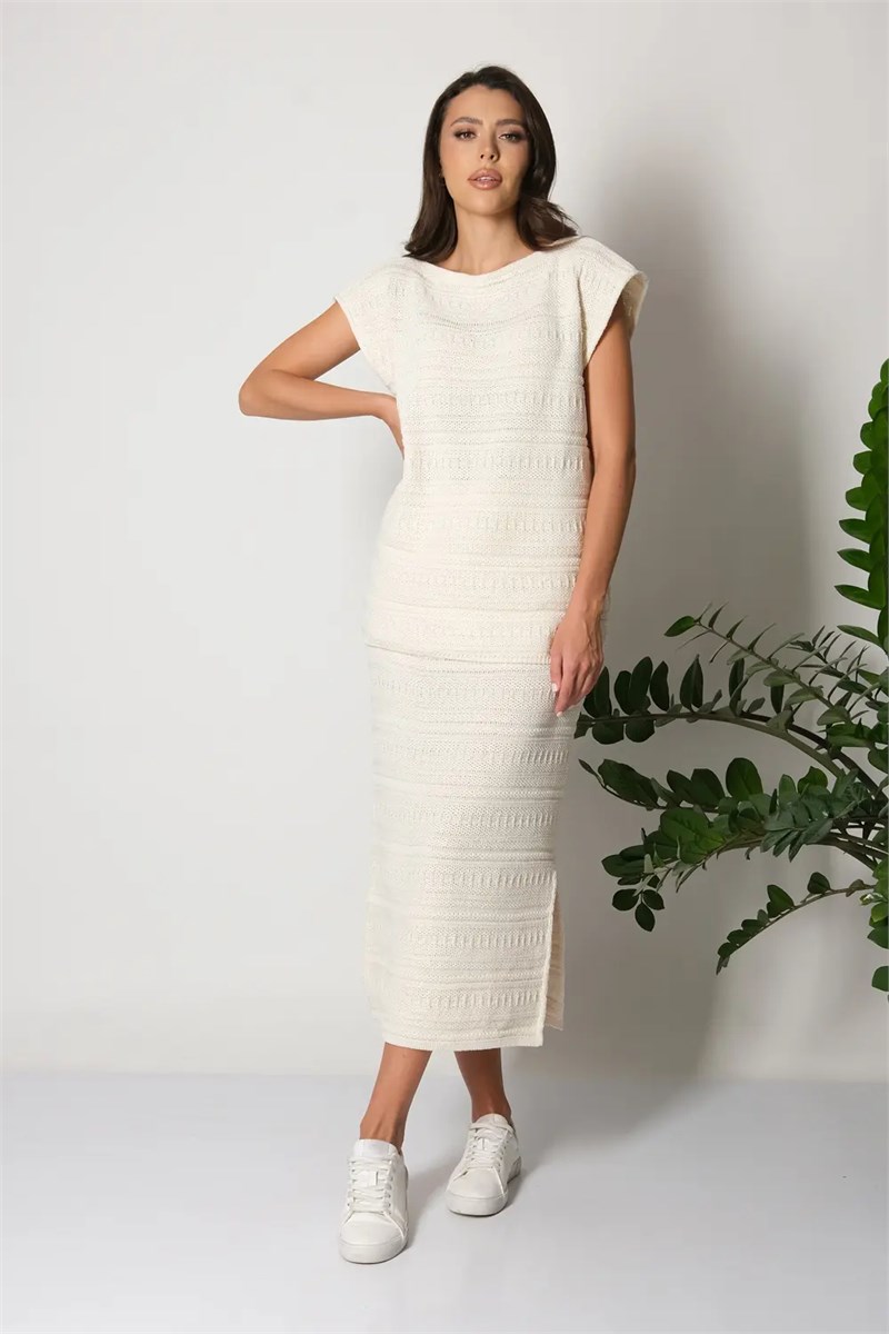 Классическая юбка прилегающего силуэта с боковым разрезом до колена. Юбка выполнена структурным рельефным переплетением. Можно носить как костюм с джемпером И 020.