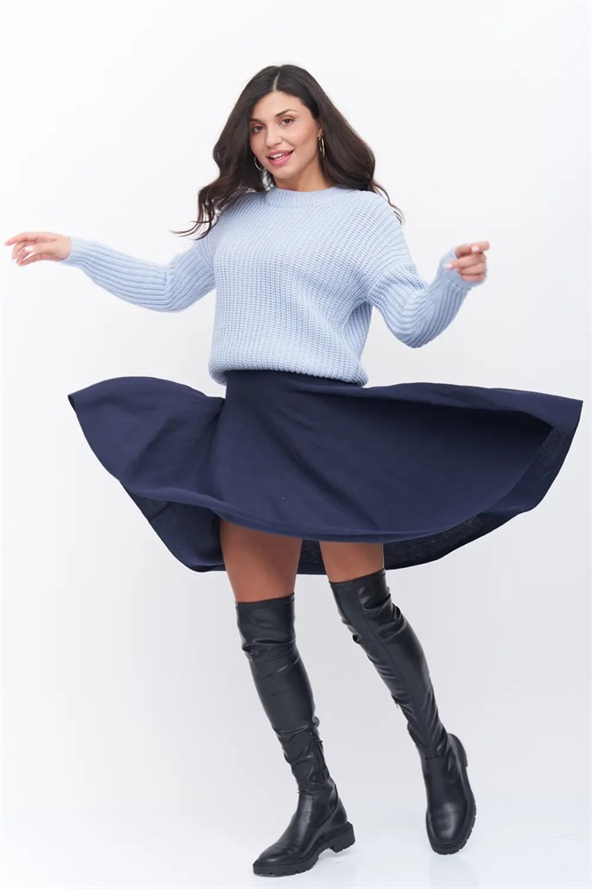 Женская вязаная юбка свободного кроя. Юбка расклешенная, выполнена по модели «солнце». Изделие выполнено гладким переплетением, в пояс проложена эластичная резинка.