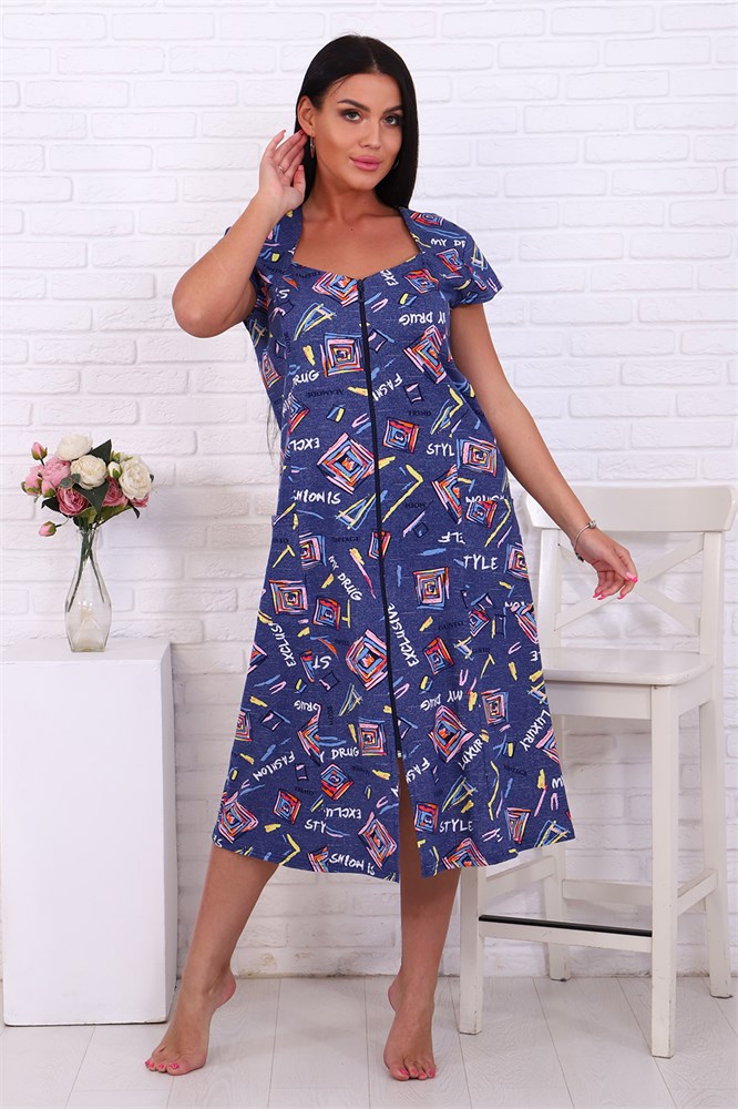 Халат женский на молнии из натурального хлопка, приятный к телу, комфортный. Модель с рельефами, слегка приталенного силуэта, фигурный вырез горловины обработан обтачкой на флизелине, короткий рукав, удобные карманы. Халат - это удобная вещь в женском домашнем гардеробе.