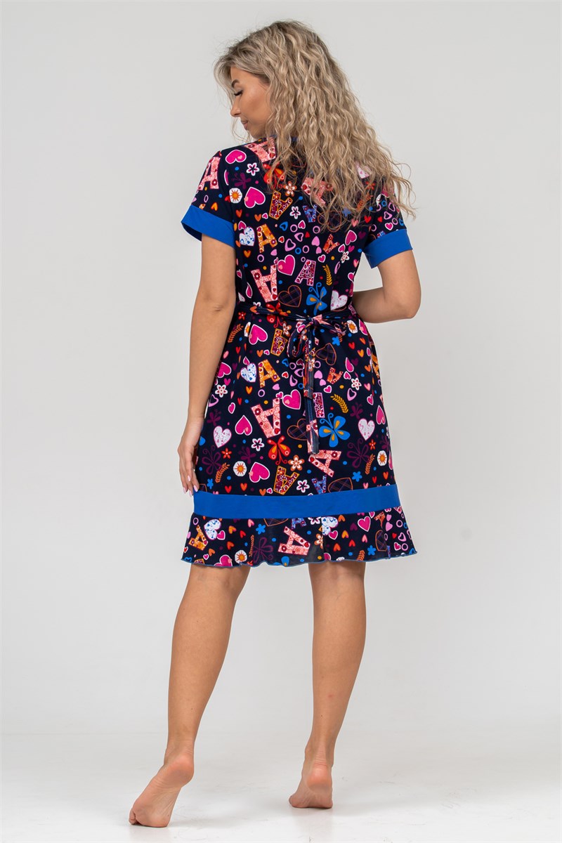 Женский халат на молнии выполнен из 100% хлопчатобумажной ткани. Модель дополняет яркая отделка по рукавам, карманам и низу изделия. А пояс на линии талии поможет легко смоделировать изящный силуэт и при этом чувствовать себя легко и непринуждённо. Данная модель прекрасно подойдёт для дома, дачи и отдыха, создавая по-настоящему тёплую атмосферу и женственный образ. Рост модели на фото 165см
