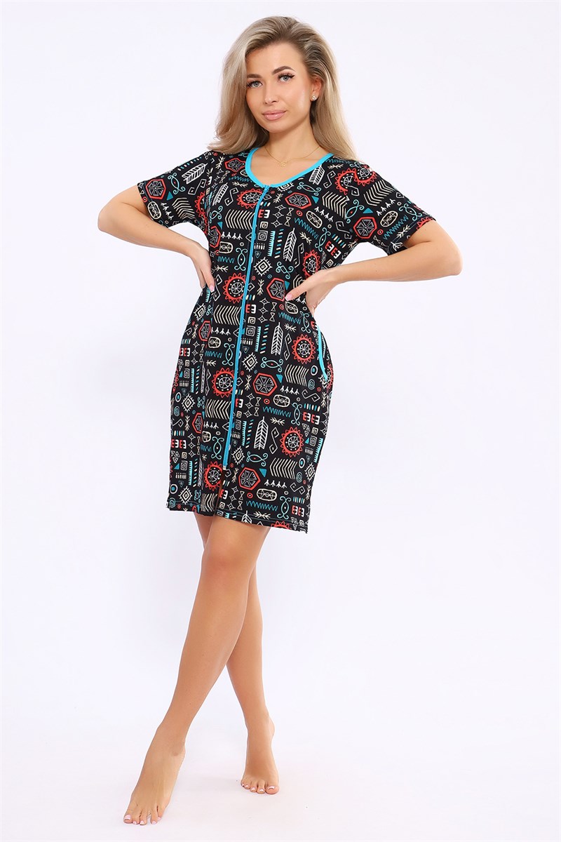 Женский халатик модных расцветок выполнен из 100% хлопчатобумажной ткани, что обеспечивает максимальный комфорт при ношении. Отличается мягкостью и приятной на ощупь текстурой. Материал прекрасно дышит. Носить такой халатик Вы сможете как летом, так и в любой другой сезон. Надёжный замок на молнии сохраняет свои свойства в течении всего времени использования. Женственный вырез и 2 боковых кармана добавляют образу шарм и делают изделие удобным и практичным. А изысканный поясок подчеркнёт вашу талию. Халатик средней длины подойдёт для любого типа фигуры. Отличная модель для дома, для роддома, после родов, для кухонных дел и хозяйственной уборки, для дачи. И конечно идеально после душа, сауны, бани и ванной. А так же будет замечательным подарком на любой праздник: 14 февраля, день рождения, 8 марта. Рекомендуется стирать в деликатном режиме 30 С. Это поможет избежать деформации и сохранить яркость цвета.
