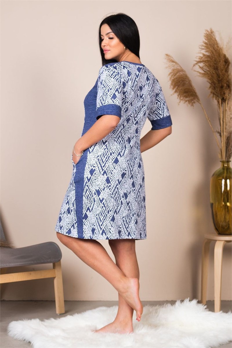 Халат женский, полуприталенного силуэта на молнии. В рельефах карман. Рукав короткий на манжете.