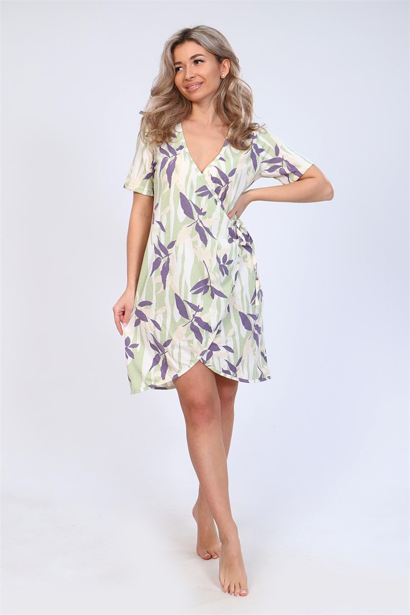 Халат запашной полуприлегающего силуэта с боковыми карманами. Комфортен для повседневной носки.