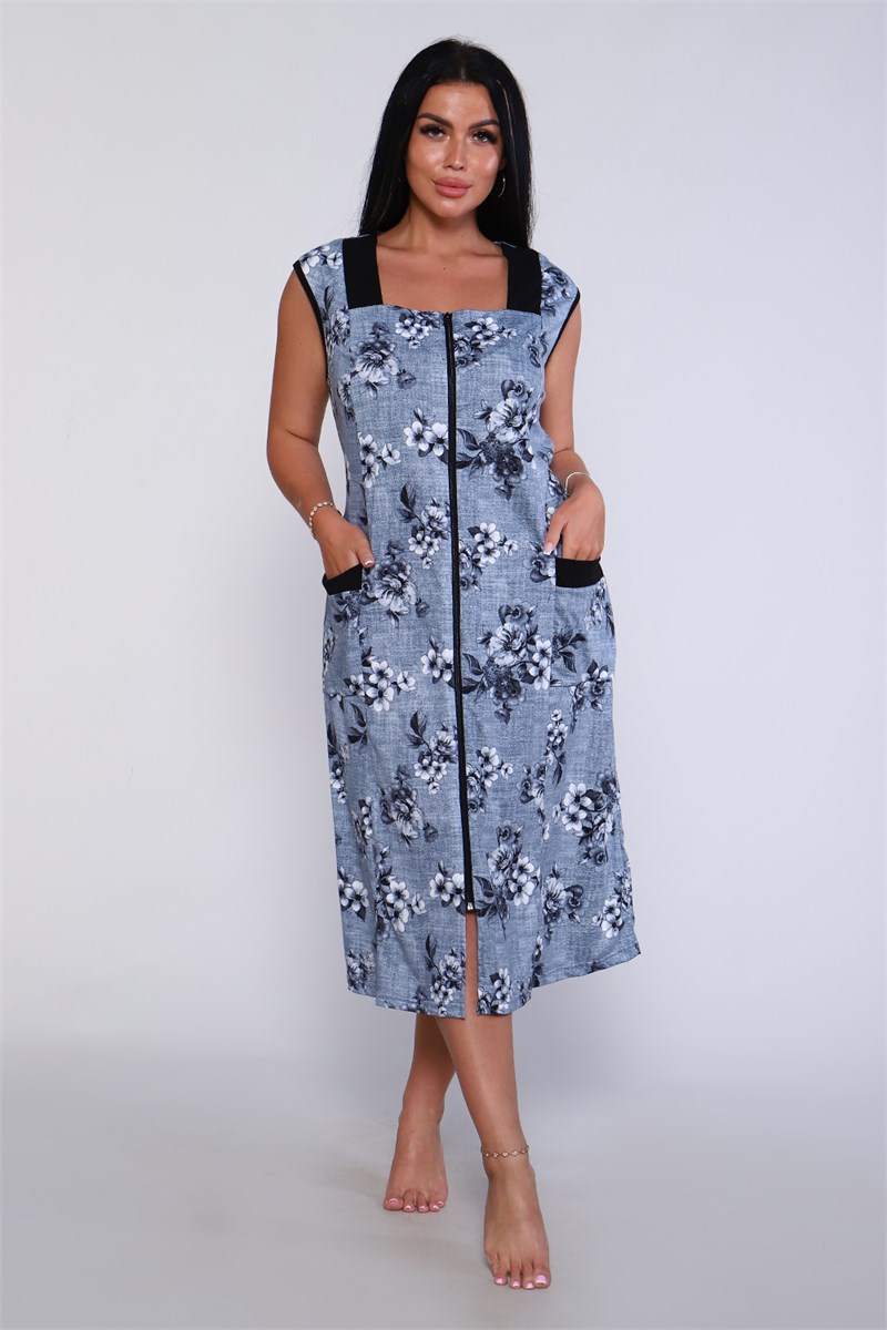 Халат трикотажный женский домашний классического кроя с фигурным вырезом на молнии. Халат представлен без рукавов, снабжен двумя накладными и вместительными карманами, также присутствует пояс, который подчеркнет вашу прекрасную фигуру и добавит элегантности, поскольку хорошо проветривается благодаря свободному крою и легкому материалу, на 100% состоящему из хлопка. когда дома уже достаточно тепло. Данная модель прекрасно подойдет для дома, отдыха, дачи и даже поездки к морю, темные и сдержанные цвета идеальны для занятий домашними делами. Размерная сетка модели включает большие размеры. Стильный и легкий халат подойдет любому типу фигуры, женщинам с пышными формами, а также беременным и кормящим.