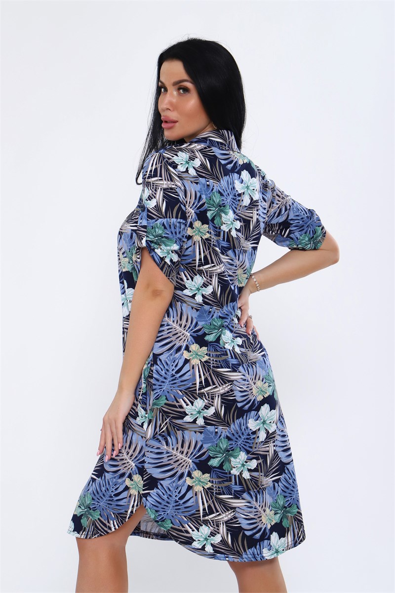 Халат - рубашка свободного силуэта с английским воротником и карманами в боковых швах. Спереди кокетка, нагрудные выточки в виде складок, что дает свободу движений. Идеально подойдет для девушек с пышными формами и для беременных. Рукав 3/4 с патой.