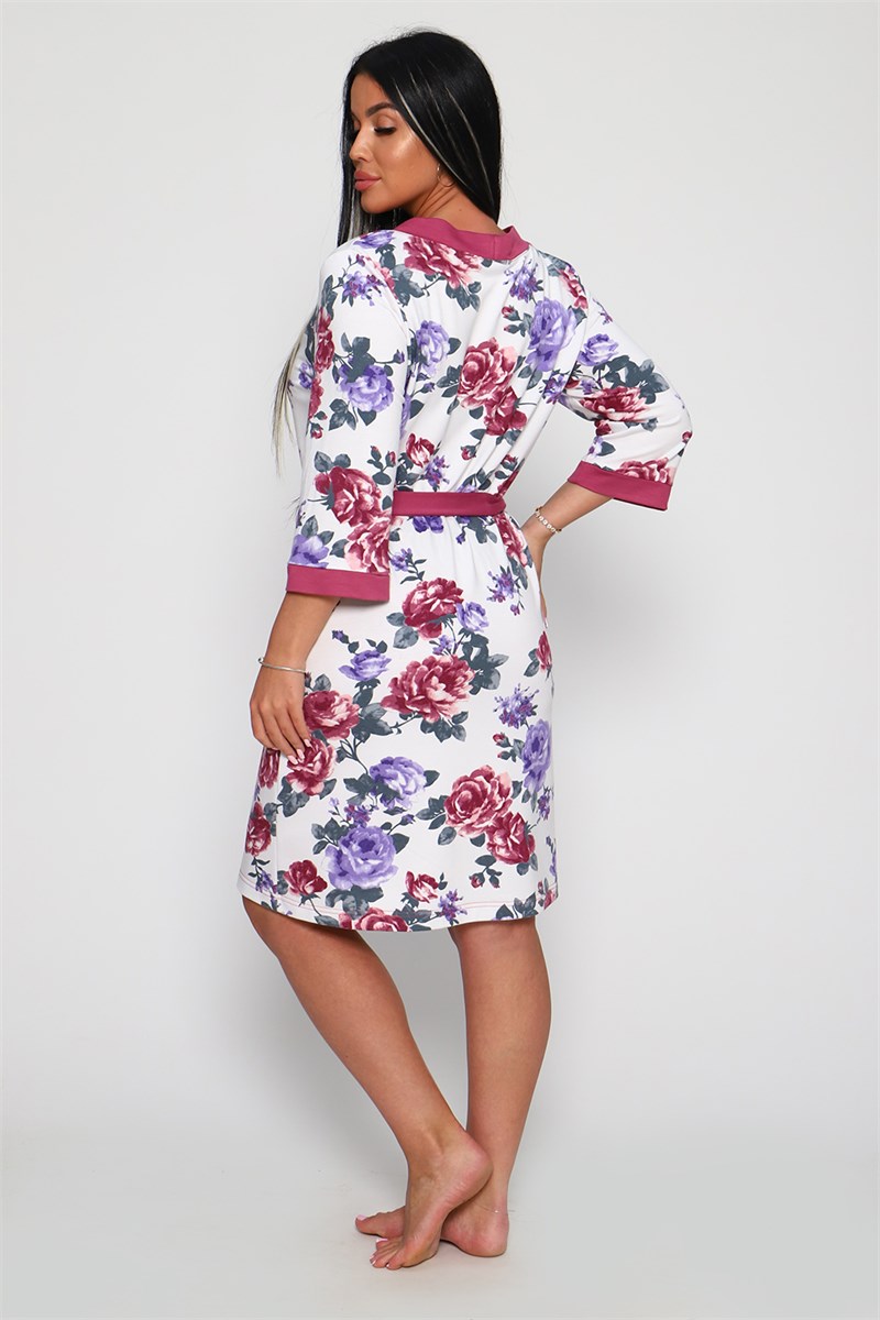 Халат женский на запах, укороченный, сшит из вискозного футера, рукав до локтя. Большой размерный ряд. На модели 46-48 размер.