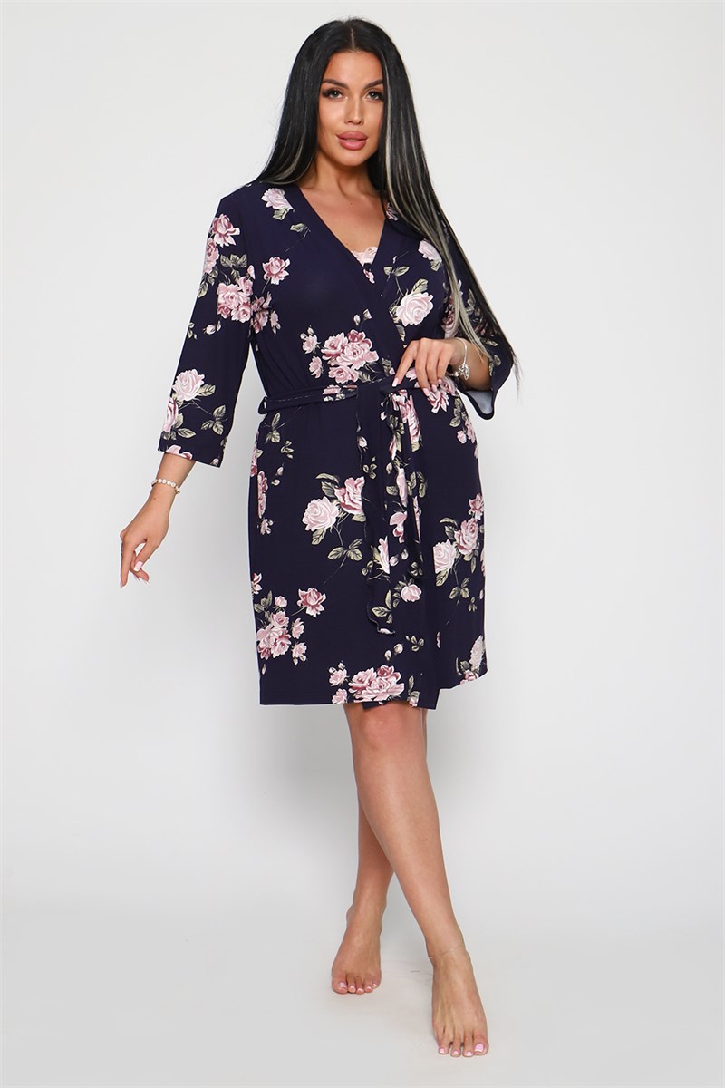 Халат из вискозы,укороченный на запах,рукав ниже локтя,размеры спаренные на модели 46-48 размер.Идеально подойдет к модели 78513.