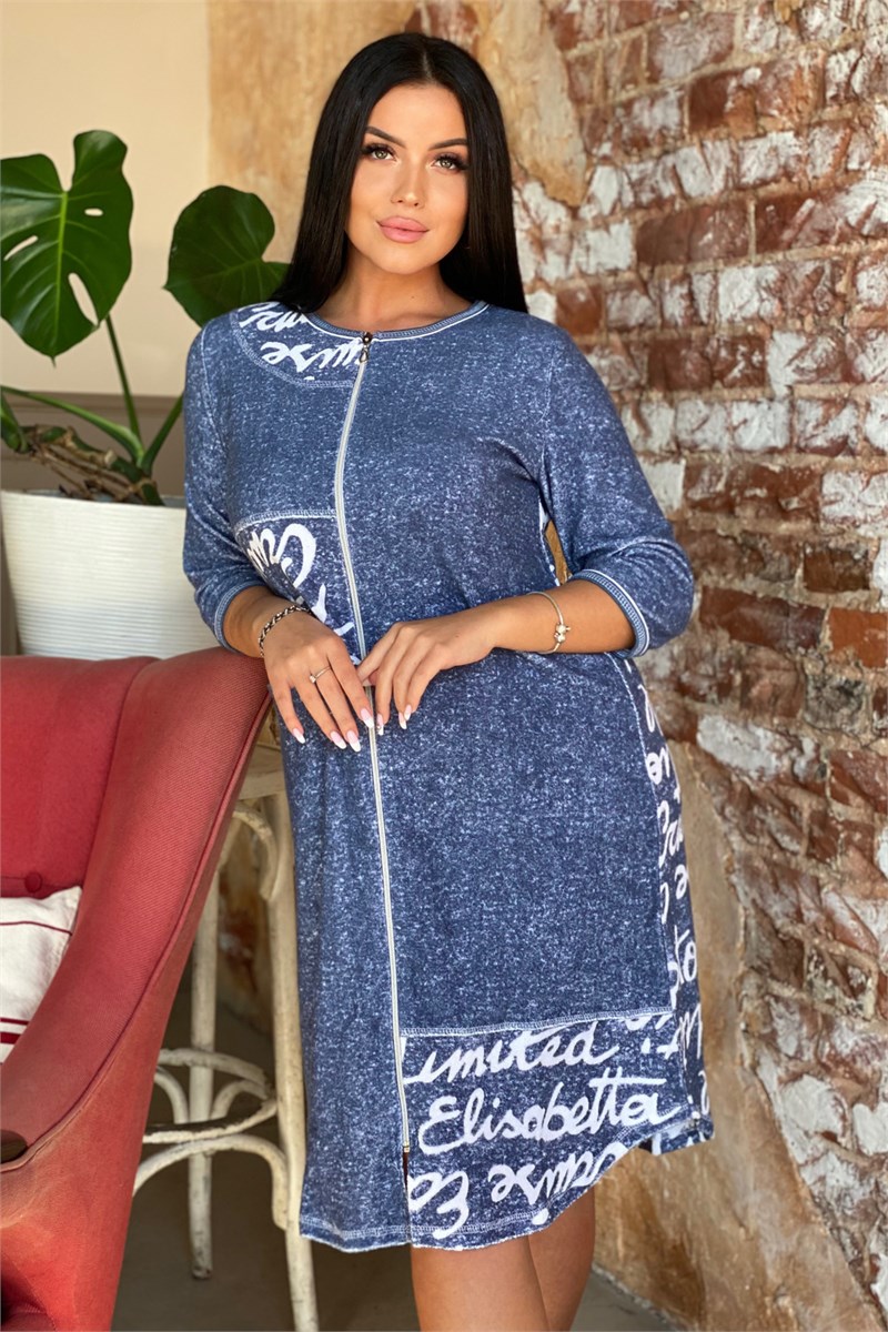 Халат женский махровый полуприлегающего силуэта, слегка расширенный к низу. Застежка на тесьму-молнию. Рукав втачной 3/4. Халат с асимметричными вставками на полочках. На полочке внутренний карман в горизонтальном шве притачивания средней и нижней части полочки.