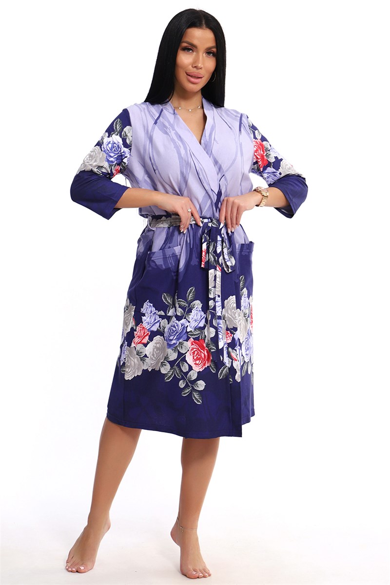 Уютный трикотажный халат с запахом - идеальное дополнение к вашему домашнему гардеробу! Он изготовлен из мягкого хлопка и подойдет женщинам с любой фигурой. Халат универсальная вещь, которая отлично подходит для отдыха, утреннего кофе или вечернего релакса. Яркая расцветка с цветочными мотивами сделает вас неотразимой .Благодаря элегантному крою и практичному поясу, вы сможете регулировать размер и подчеркивать свою фигуру. Рукава сделаны так, чтобы не мешать вам при выполнении повседневных дел. В халате приятно не только окунуться в мир спокойствия и домашнего уюта, но и встретить гостей. Желаем вам всегда быть нарядной и обворожительной!