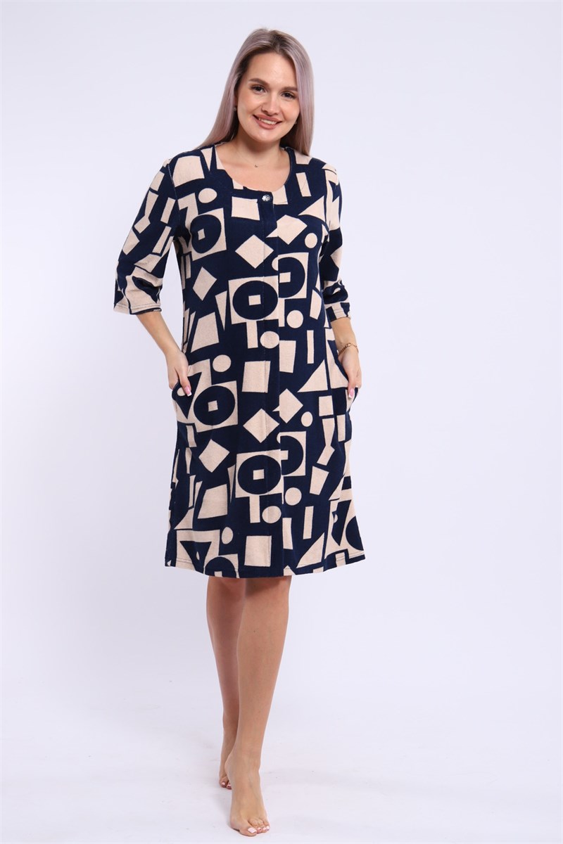 Халат женский махровый на молнии. Халат ткань состав 80% хлопок 20% пэ. Халат на молнии, которая закрывается планкой на пуговицу, рукав 3/4, длина халата средняя.