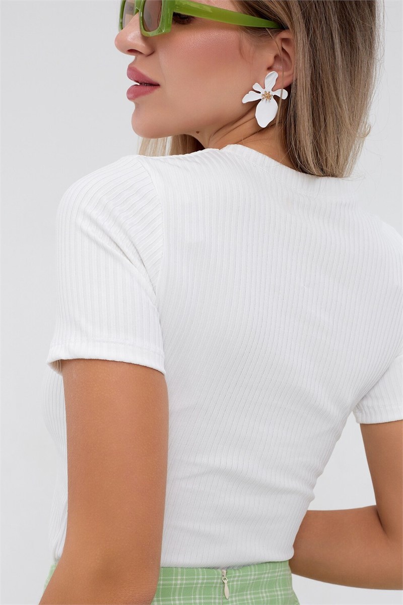 МодельКофта женская в рубчик с акцентным декольте 2ксL SMILE