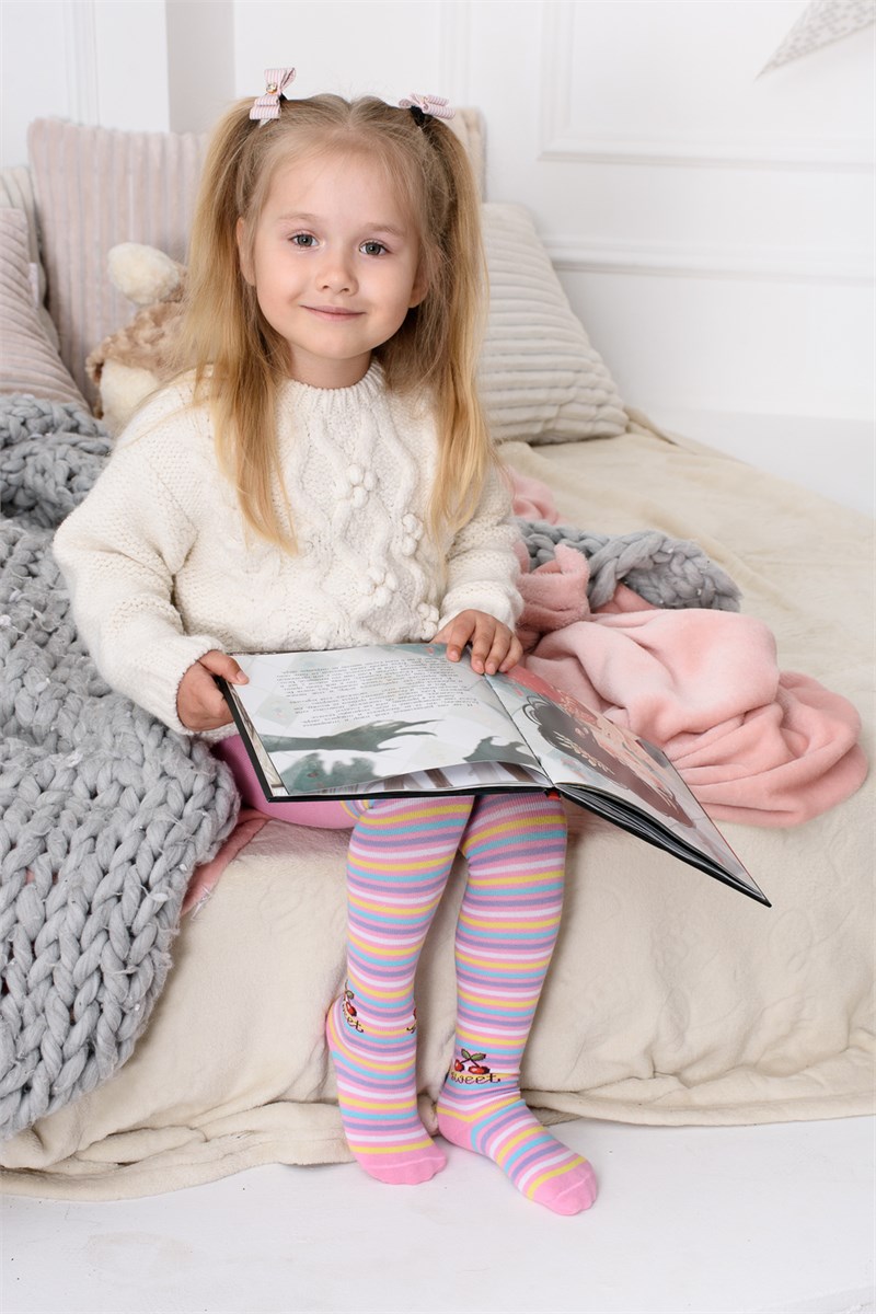 Колготки с вязаным рисунком в виде вишенок и цветных полосок для девочек