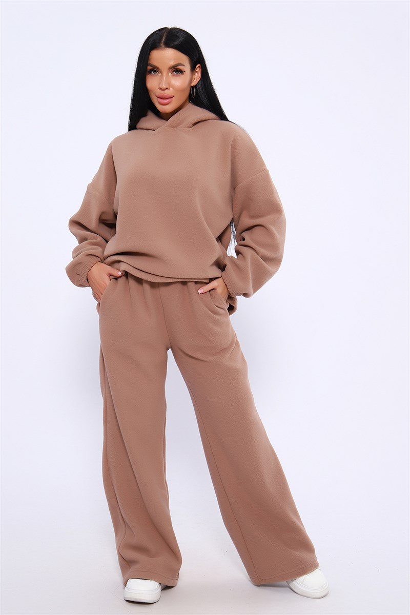 Флисовый костюм - решение для активных людей, которые проводят много времени на улице. Благодаря потрясающим теплоизоляционным свойствам, флисовый костюм отличный выбором зимнего сезона. Он защитит вас от мороза, обеспечивая вам ощущение тепла и уюта. Худи женское оверсайз с капюшоном и мягкой резинкой на рукавах, брюки женские с высокой посадкой на резинке прямого кроя с прорезными карманами. Костюм в плюс-сайз размерах, обеспечивая комфорт и свободу движений