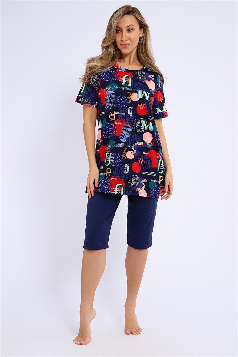 Костюм состоит из туники и бридж. Туника с короткими рукавами с манжетами. В боковых швах небольшие разрезы. Бриджи с карманами.