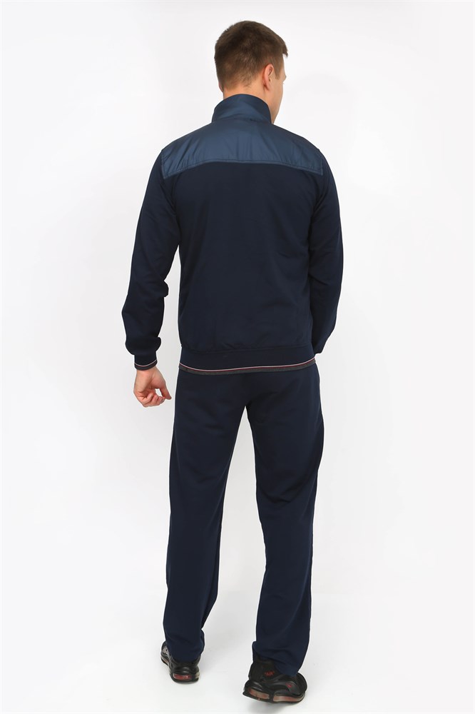Мужской спортивный костюм выполнен из трикотажа с добавлением плащевки. Карманы брюк и кофты на молнии с декоративной листочкой. Низ и рукава кофты на манжетах, брюки прямого кроя, на талии резинка внутри которой находиться веревка для регулирования, воротник стойка. Костюм отлично подойдет для тренировок, для повседневной носки, дачи и дома.