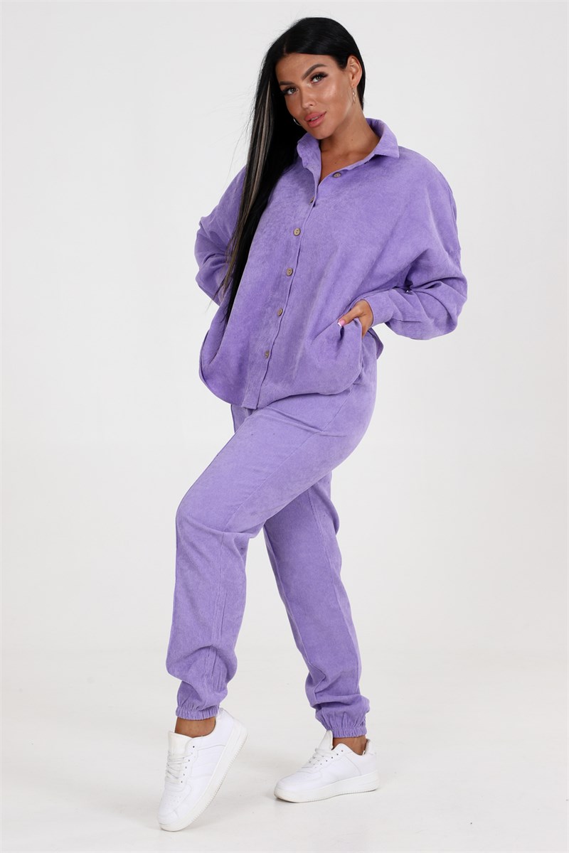 Брюки в данном костюме оснащены эластичной резинкой, что обеспечивает комфорт и идеальную посадку на любую фигуру. Изготовлены они из высококачественного велюра, который приятен на ощупь и обеспечивает долговечность изделия.
