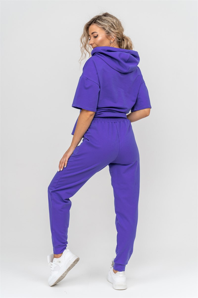 Женский костюм выполнен из футера высокого качества с хлопком и небольшим добавлением полиэстера и лайкры, что позволяет изделию не скатываться и оставлять идеальный внешний вид на долгое время. Костюм состоит из толстовки и брюк. Толстовка с капюшоном и шнурком. Линия плеча спущена, рукав укороченный, по бокам имеются небольшие разрезы. Брюки представлены с вместительными боковыми карманами. Манжеты брюк выполнены из основного материала, а пояс на специализированной поясной машине, что делает швы ровными и качественными. Свободный крой прекрасно будет смотреться на дамах с любыми формами. Костюм такого плана представлен в широкой размерной сетке, что позволяет выбрать его как девушке, так и женщине. Однотонный костюм модных расцветок будет удачным выбором для поездок в отпуск, на пикник, для школы, для активного отдыха и прогулок по городу. Будет гармонично сочетаться как с кроссовками, так и с туфлями, балетками или босоножками. Используя эту модель в качестве домашнего костюма, Вы поймёте, что это именно тот самый идеальный вариант, в котором будете себя чувствовать удобно, комфортно и современно. Костюм с брюками - это настоящая находка для тех, кто ценит свою индивидуальность!