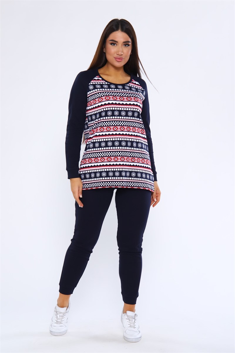 Костюм женский из интерлочного полотна. Кофта костюма свободного прямого кроя, рукава реглан, по бокам разрезы; брюки слегка заужены книзу на манжетах, по бокам прорезные карманы. Костюм идеален для дома и дачи.