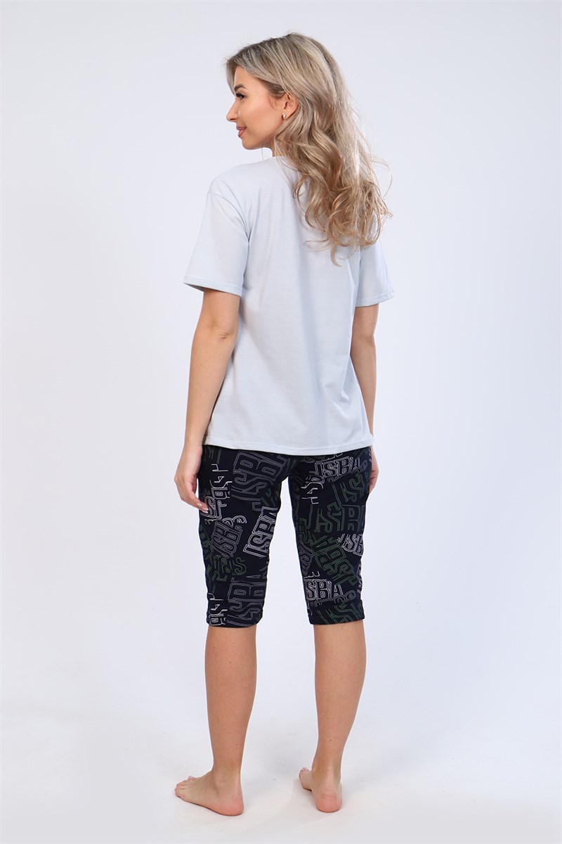 Костюм состоит из футболки и бридж. Футболка с короткими рукавами и принтом. Бриджи с карманами. Неотъемлемый элемент домашнего гардероба.