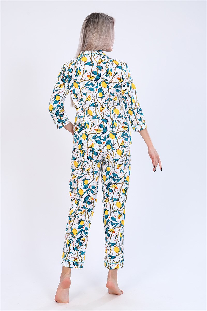 Уютная стильная пижама женская состоит из брюк и рубашки. Рубашка с 3/4 рукав, полуприлегающего силуэта, на пуговицах, с воротником в английском стиле обработан атласным кантом. Классическая расцветка, натуральная ткань, полуприлегающий силуэт. Комплект женский может использоваться и как домашняя пижама. Он также станет отличным приобретением для беременных и кормящих женщин, в подарок, маме, сестре, бабушке, подруге, женщинам больших размеров.