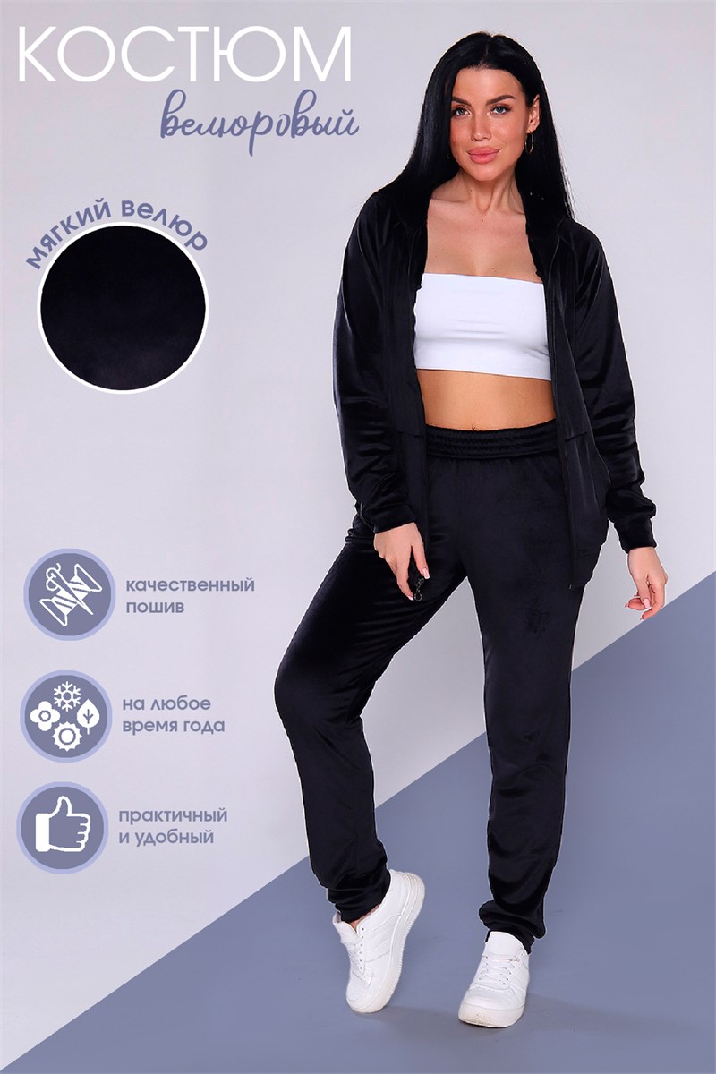 Костюм женский велюровый, повседневный, всесезонный. Костюм состоит из толстовки и брюк на широкой резинке. Толстовка на молнии, с двойным капюшоном, и с карманами кенгуру. Брюки - джоггеры на манжетах, карманы с отрезным бочком. Костюм универсальный, для прогулок, для занятия фитнесом, для дома. Замеры талии на брюках производятся по не растянутой резинке.