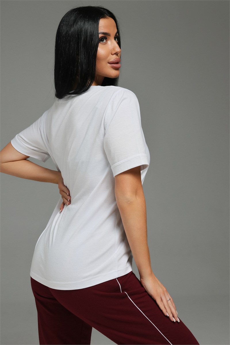 Брючный трикотажный костюм - это стильный и элегантный предмет гардероба, идеально подходит для дома и отдыха на любой период: весенний, осенний, летний и зимний. Костюм состоит из брюк и футболки, выполненный из высококачественного трикотажного материала. На карманах и по низу брюк декор дополнен декоративными пуговицами, как и на обтачке по фигурной планке. Изысканный комплект является идеальным выбором для всех, кто ценит качество и элегантность.