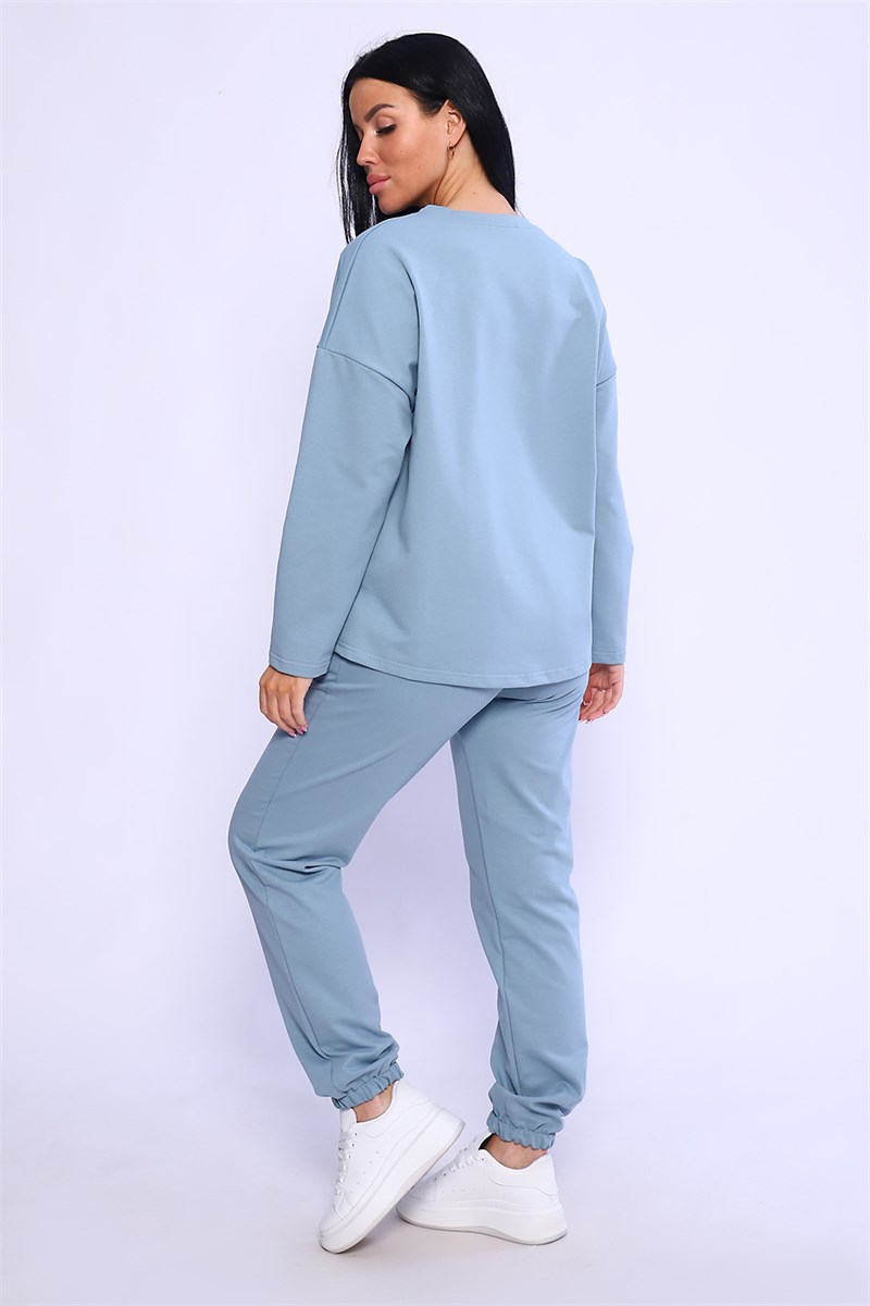 Костюм двойка выполнен из мягкого футера с лайкрой, туника с длинным рукавом, с декоративными разрезами на полочке и брючки с внутренним карманом с подгибкой внизу на резинку. Комфортное решение на каждый день.