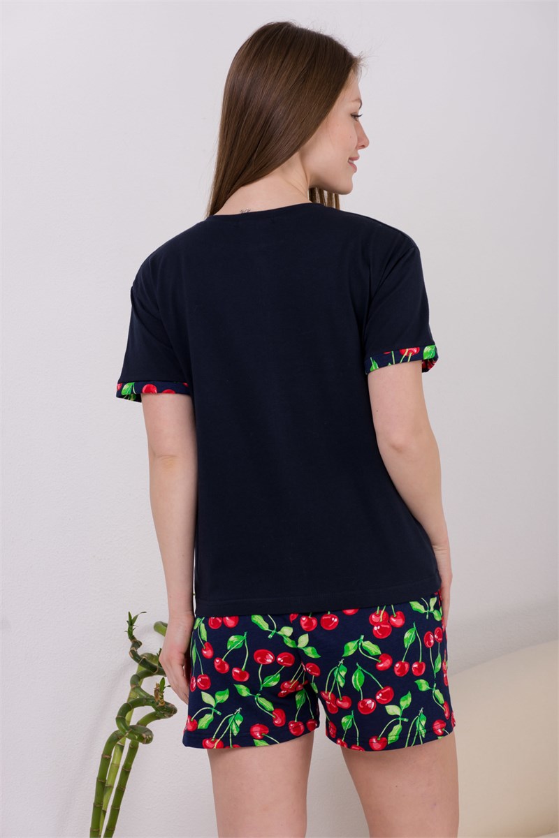 Костюм, состоящий из футболки и шорт с боковыми карманами. На рукавах манжеты с отворотами. Принт с вишенками делает изделие оригинальным. Костюм незаменим на отдыхе и дома.