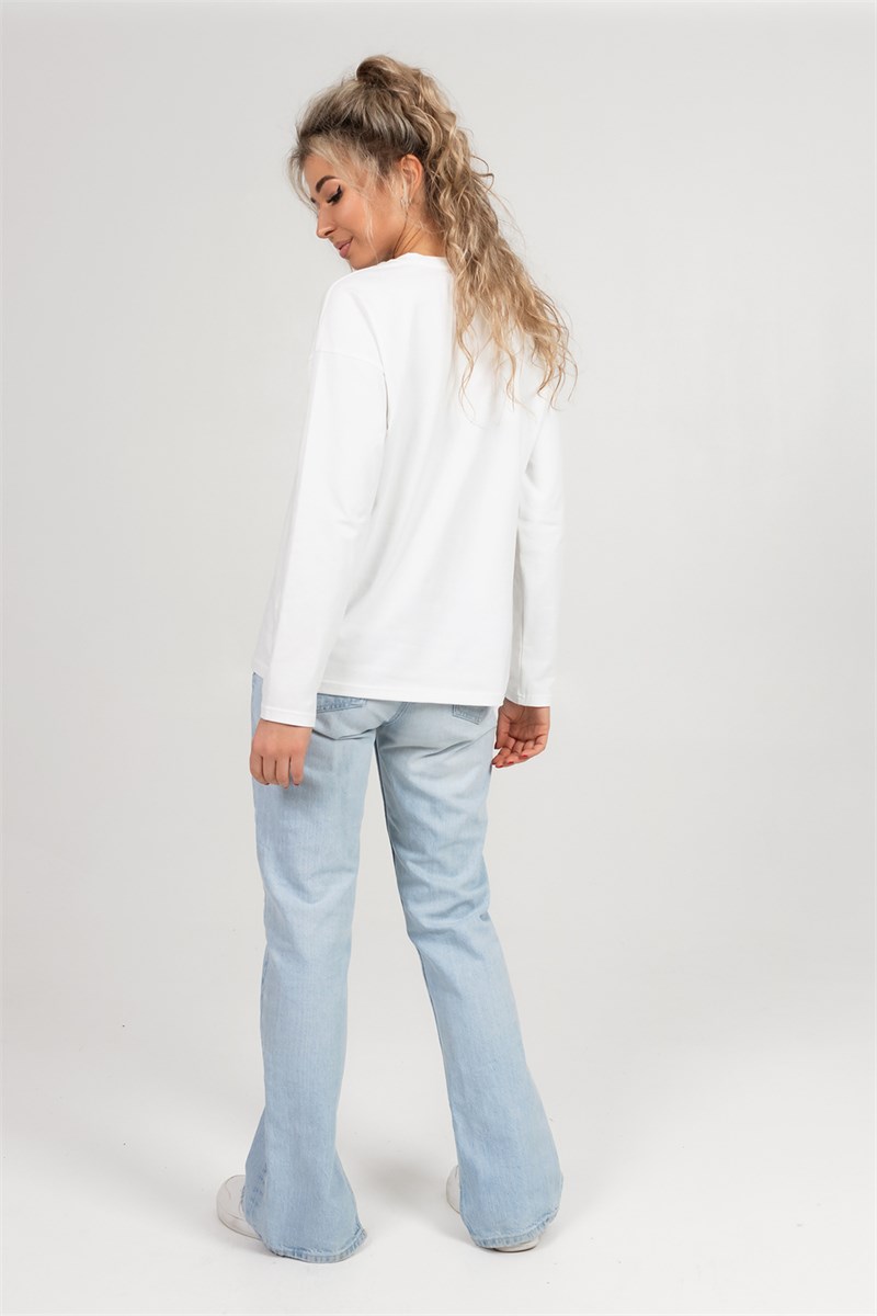 Лонгслив с прямым кроем и свободным силуэтом, доходящий до линии бёдер.Плечи слегка приспущены, рукав длинный, втачной. Горловина имеет округлую форму и обтачку. На передней части расположен оригинальный принт.