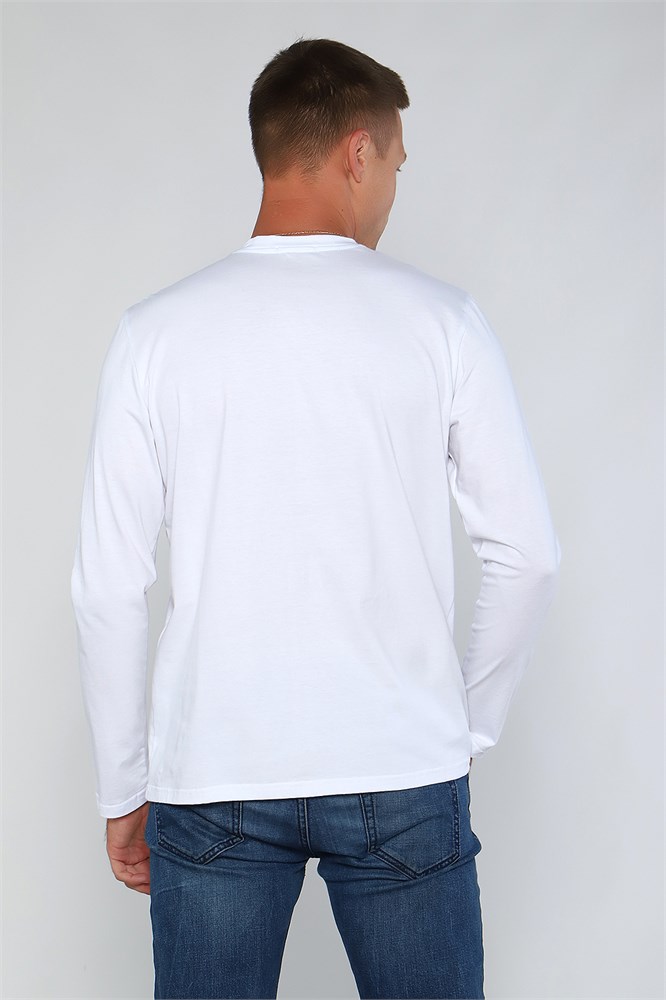 Лонгслив мужской с округлой горловиной, обработанной усилителем. Широкая футболка с длинными рукавами имеет свободный крой и классическую, не спущенную линию плеча.