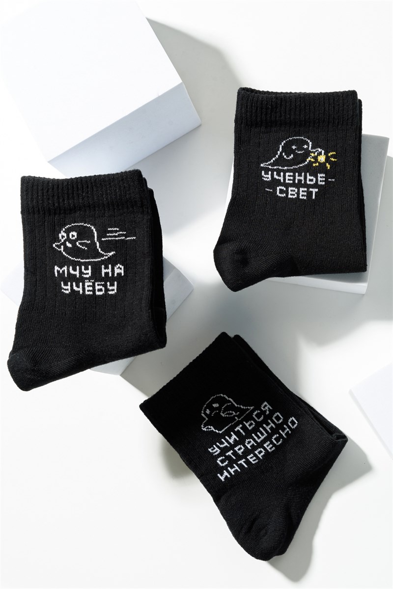 Подростковые носочки с реалистичными надписями, связанные из натурального хлопка. Креативная модель мягко облегает ногу, не доставляя дискомфорт в течение всего дня. Носки сочетаются с разной обувью, подходят как мальчикам, так и девочкам.