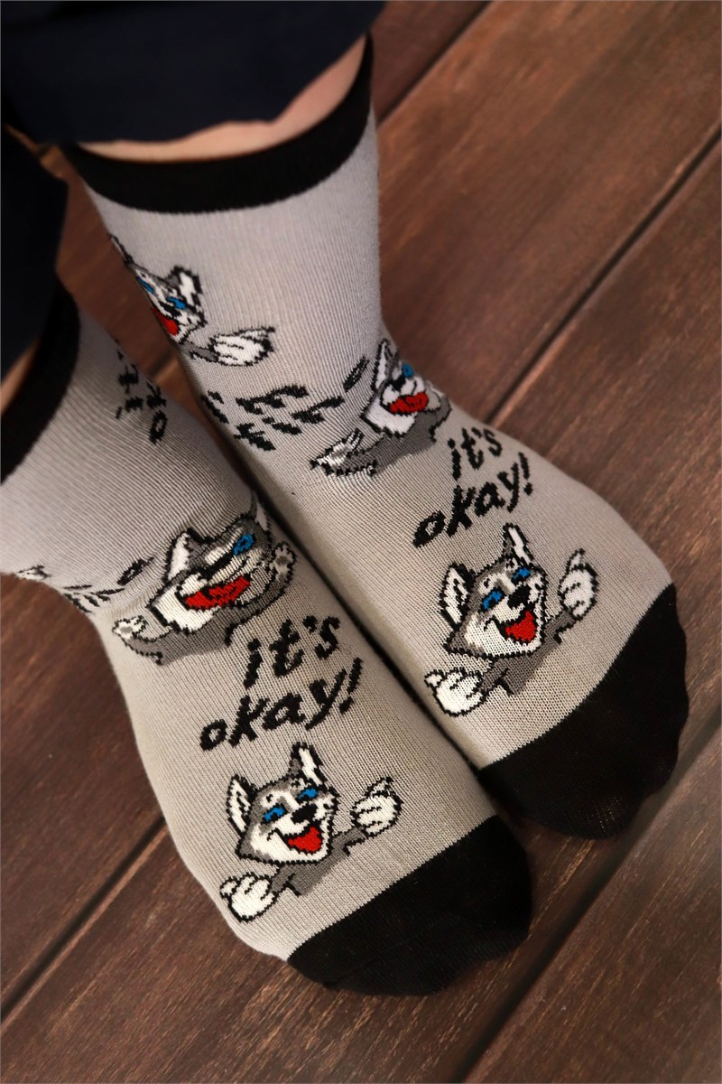 Набор детских носочков с очаровательными собачками хаски. В упаковке 3 пары - по 1 паре каждого цвета