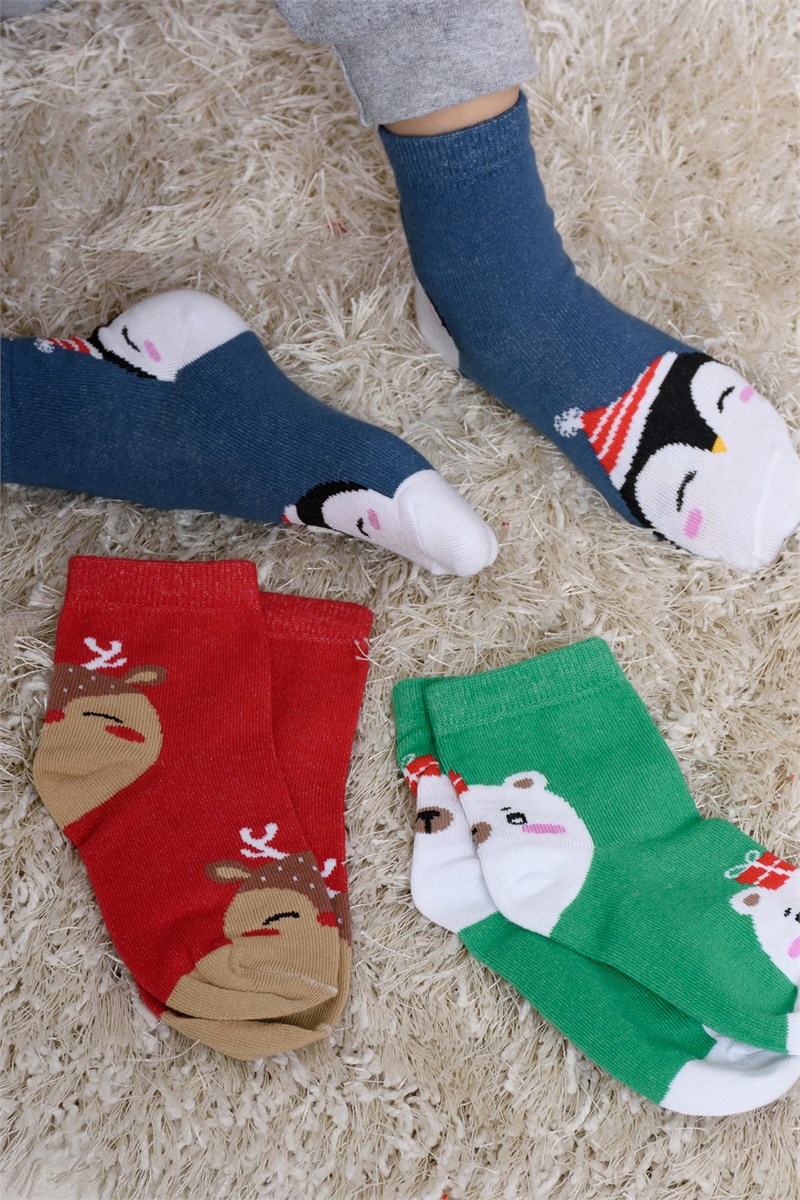 Яркий набор детских новогодних носков. В упаковке 3 пары в пакете - по 1 паре каждой расцветки