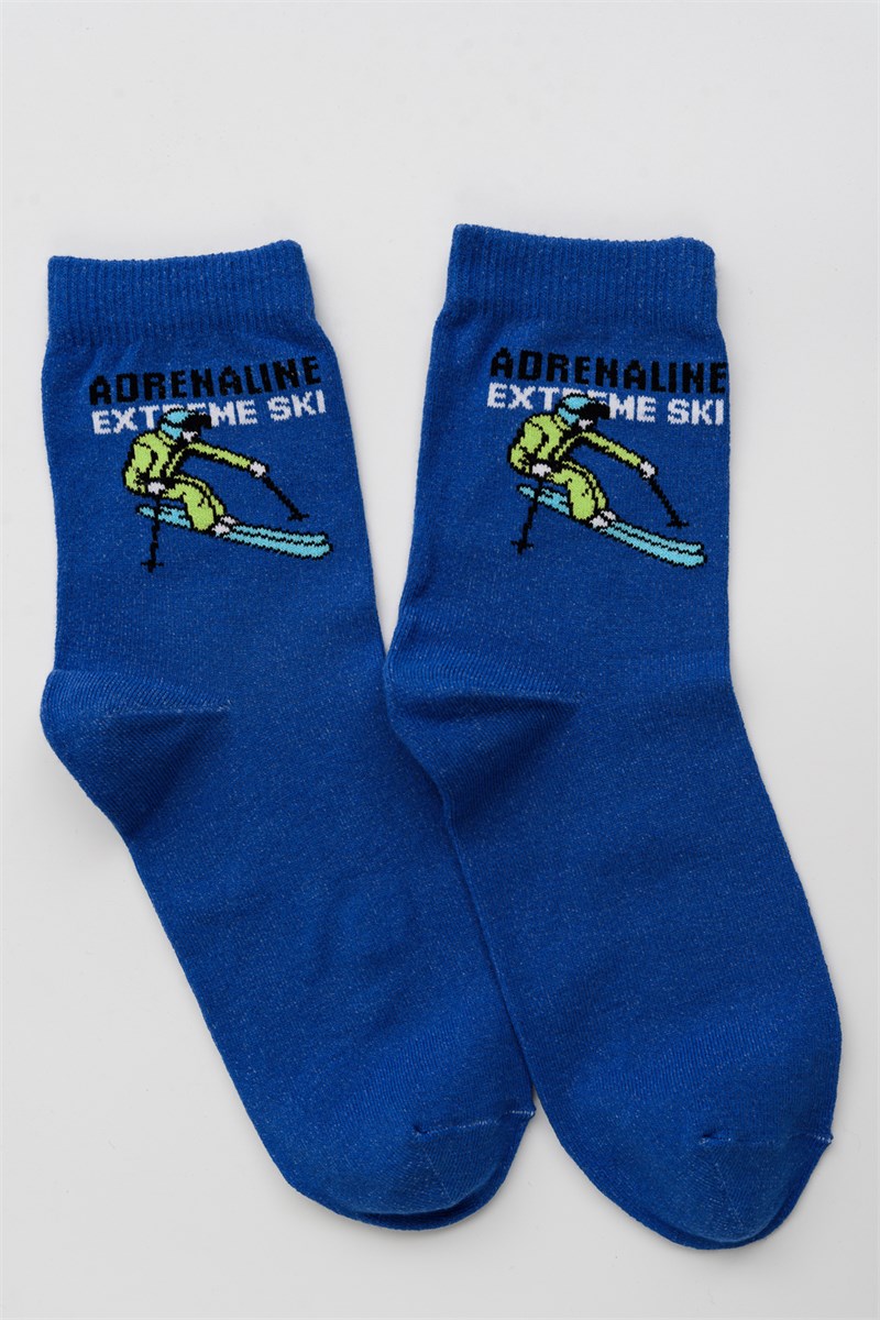 Комплект мужских носков 1 пара. На верхней части носка изображение горнолыжника.