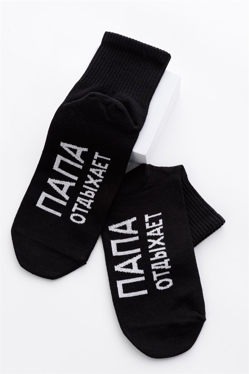 Мужские носки, комплект 3 пары. Широкая резинка по всей верхней части. Надпись на стопе Папа отдыхает