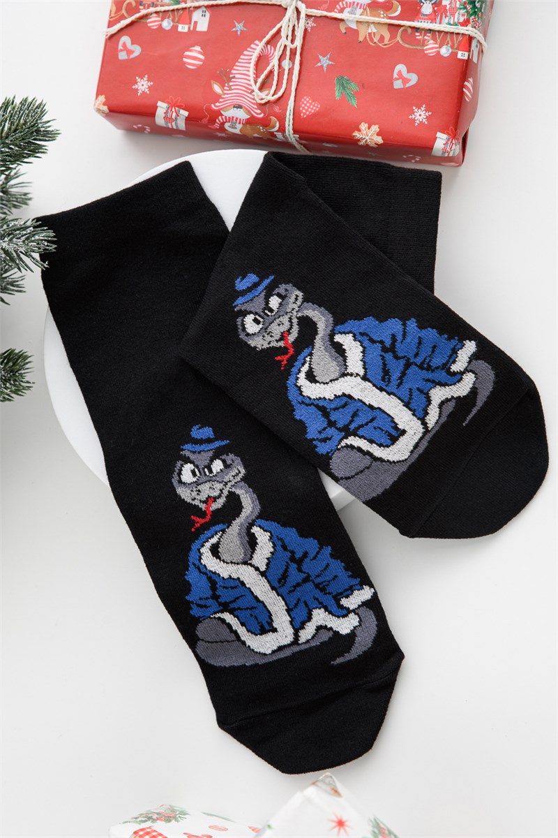 Оригинальные мужские новогодние носки. В комплекте 1 пара. На основной части носка изображение символа будущего года Змеи.